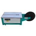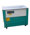 該打包機工作原理:打包物體基本處理機器中間,首先右頂體上升,壓緊帶的前端,把帶子收緊捆在物體上,隨后左頂體上升,壓緊下層帶子的適當位置,加熱片伸進兩帶子中間,中頂刀上升,切斷帶子,較后把下一下捆扎帶子送到位,完成一個工作循環。
