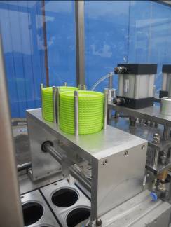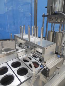 杯盒灌裝封口機為一機多用型高速全自動充填封口機。根據(jù)用戶需要還可生產(chǎn)其它一機多用機型。