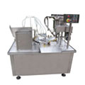口服液糖漿灌裝軋蓋一體機主要適用于各種口服液及糖漿液體的灌裝、壓塞及旋..