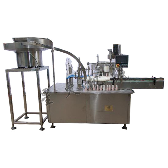 這款振蕩理瓶灌裝旋蓋一體機專門針對小劑量的藥液、口服液、飲料、保健品、香水等液體灌裝設計的 、尤其適用于1ml-10ml容量的灌裝 。采用單頭蠕動泵灌裝,316L不銹鋼材料;工作臺面以不銹鋼材料防護,整機符合GMP要求。采用振蕩式理瓶、圓盤定位灌裝,有自動對口裝置,自動上蓋旋蓋,定量灌裝,計量準確。特別適用于中小批量的生產可選購防護罩!