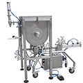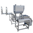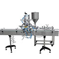 雙頭配線臥式攪拌醬料灌裝機主要是針對粘稠并帶有顆粒且濃度較大的醬狀物料..