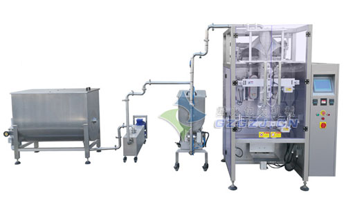 1、袋裝醬料包裝線帶液體攪拌裝置和液位控制裝置,防止微顆粒物料沉淀;