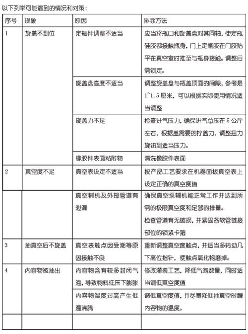 X35B3 型桌面型真空旋蓋機,采用應(yīng)用于旋蓋機及封罐機的開啟式全密封真空室技術(shù),屬半自動機型,人工配蓋,人工進出瓶,手動關(guān)閉真空室。機器內(nèi)部采用氣動執(zhí)行裝置驅(qū)動旋蓋,采用精確控制執(zhí)行件氣壓實現(xiàn)扭矩控制,屬于非摩擦式扭力限制使用壽命更長;由于采用可靠的全密封技術(shù),配置小功率真空泵即可達到理想的真空度,真空度可按需設(shè)定。X35 系列機型具有經(jīng)濟性、廣泛適用性、易用性、可靠性和移動性,適合小型生產(chǎn)車間、特殊規(guī)格用途、以及實驗室使用。